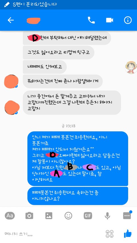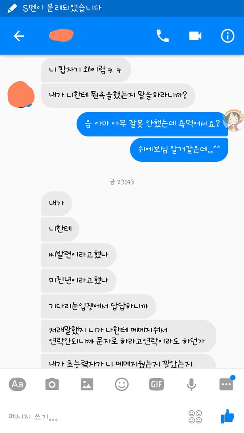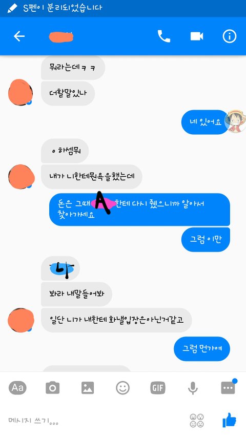 근데 어제 저녁 10시경에 문자로 페매안되냐고 물어봐