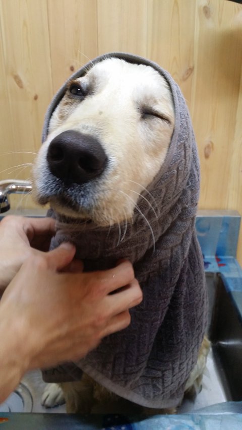 목욕만 하면 눈이 감겨요~