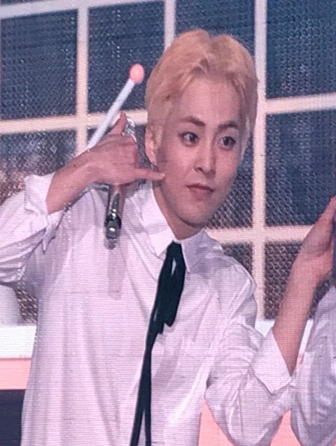 시우민 멤버한테 전화기 대주고 본인은 손가락 전화기