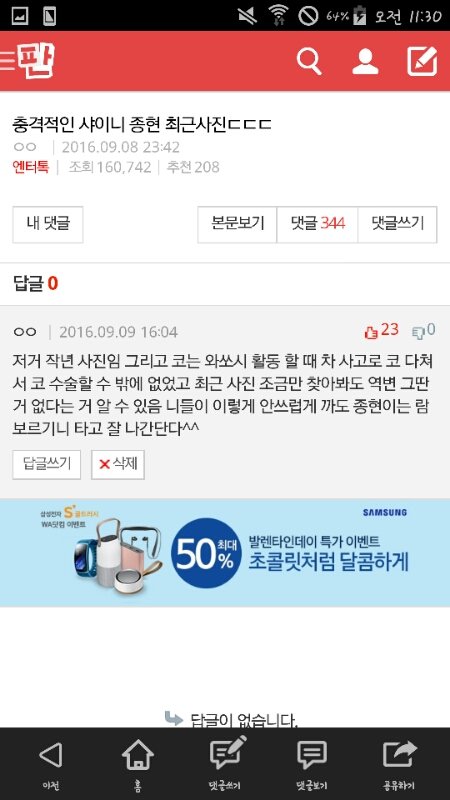 인증하라는 댓글이 많네 나 지금 약속 때문에 밖에 나와서 앨범으론 인증하기 어려울 거 같아 가족 일로 나온 거라서 밤 늦게 들어갈 거 같기도 하고... 근데 인증은 빨리 하고 싶어서 엄청 고민하다가 그냥 옛날부터 샤이니 까글이나 쉴드글 같은 거에 댓글 적은 걸로 인증하기로 했어...ㅎ 작성 날짜는 댓글에 있으니까 그걸로 보고! 좀 인증이 부실하긴 한데ㅠㅜ 그래도 내가 진짜 샤이니 팬이라는 걸 조금이나마 믿어 줬으면 좋겠어서ㅎㅎ 아 그리고 방탄이랑 트와이스만 까인다는 게 아니라 유독 이 두 팀만 요새 까여서 그렇게 적은 거야! 다른 팀이 안 까인다는 게 아니라