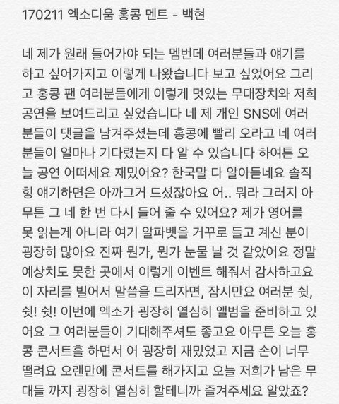 백현이 홍콩콘 멘트