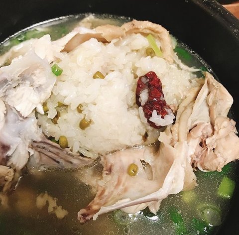 닭의 배를 가르면.. 녹두 찹쌀죽이 가~~득 !!