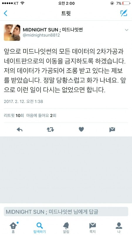 내가 공지 능능이거나 집마분이랑 컨택한 능능이/ 처음 2차가공 시작한 능능이(둘 다 공지 능능이랑 동일 인물)는 아니여서 일단 홈마분 반응만 올릴게 심각성 못 느끼는 애들 있는 것 같아서.. 그 분이 이렇게 생각하시면 크게는 법정까지 갈수 있지 않을까 물론 그럴 일은 없을것 같고 없었으면 좋겠지만 홈마분 입장에서는 충분히 그럴 수 있으시다고 생각해 우리가 잘못한 거 맞아 얘들아 그렇다능톡에 쓴 다 글 삭제하고 2차가공 짤도 쓰지 말고 그렇다능톡 즐겨찾기도 해제해줬으면 좋겠어