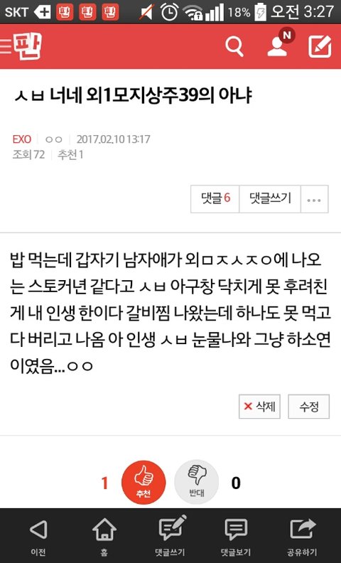 ㅅㅂ 솔직히 내 얼굴 저정도 아닌거 알면서도 들으니까 우울해 뒤지겠음 힐링하러 엑톡 들어오면 화력 죶망이고 ㅅㅂ 아오 ㅅㅁ놑북