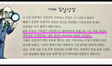 초등교재로 쓰인다는데 김일성을 대놓고 우상하노...