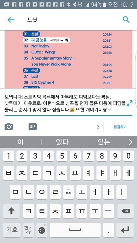 그 이후 내용은 개미카페랑 스밍목록이 달라서 화력이 분산되니까 신곡을 앞으로 몰아넣어서 개미카페랑 비슷해져서 좋을 것 같다? 그런식으로 보낼거얌 지금 밖이여서 슴잉은 공기계로 돌리고 나왔오 원하면 dna 인증 가능해!