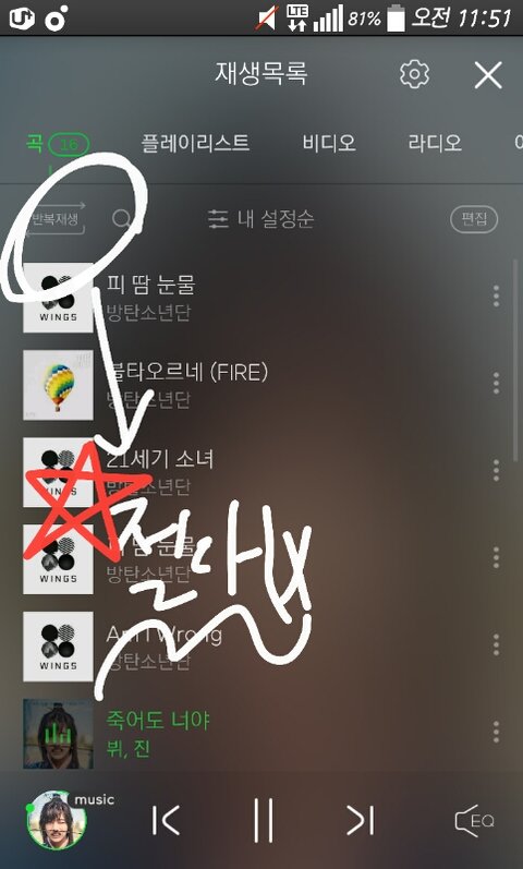 셔플(랜덤재생) 절대 안돼. 전체반복 반드시 눌러줘
