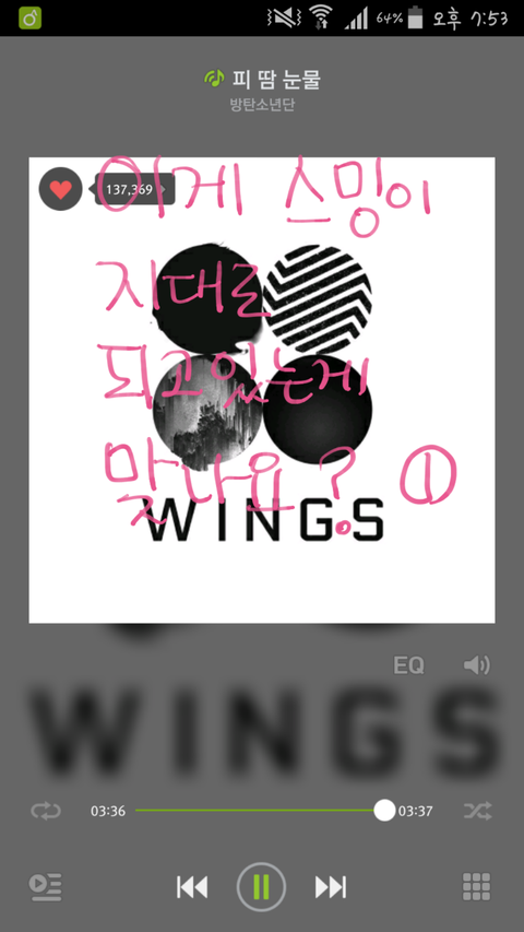나 피땀부터 했었는데 이게 저번에 팬톡에 글올리고 스밍인증했는데 잘못하고있다는고야!!! 내가 스밍을 피땀만 오쳔번을 했는데ㅠㅠㅠㅠ 광광 세상부질없...퍽