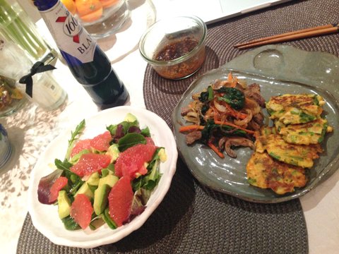 잡채랑 부침개, 자몽+아보카도 샐러드