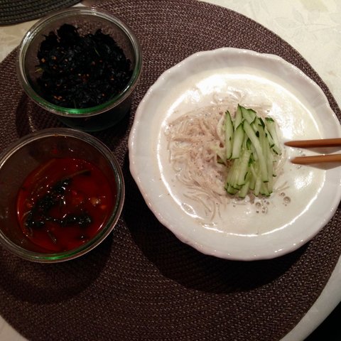 두유(당분 첨가 안된거) +땅콩+참깨로 간단히 만들었지만 맛은 진짜 콩국수맛