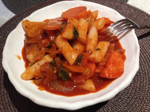 멸치다시야채육수에 양배추, 양파, 대파, 당근, 고구마 넣은 떡볶이에요