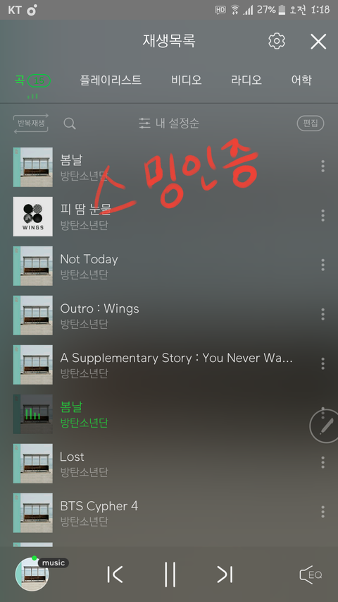 이삐들 반복재생이아니라 전체반복눌러야하는거지?