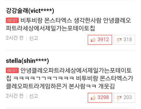 예상치도 못했는데ㅋㅋㅋㅋㅋ베댓 젤위에 저거 있는거ㅋㅋㅋㄱ밑에 베댓에도 비투비 몬엑언급되고 추천수 쩔음 그냥 전체댓글에도 다 비툽 몬엑 얘기임ㅋㄱㅋㅋㅋ멜디들 베베들 존경심든다ㅋㅋ아무래도 왠지 호기심에 유튜브 클레오 파트라 검색해본 머글분들이 입덕많이 할거 같은 느낌 아닌 느낌ㅋㅋㅋㅋㅋ그럼 쓰니는 이만 클레오파트라 한번 더 보고 자겠음ㅋㄱㅋㅋ
