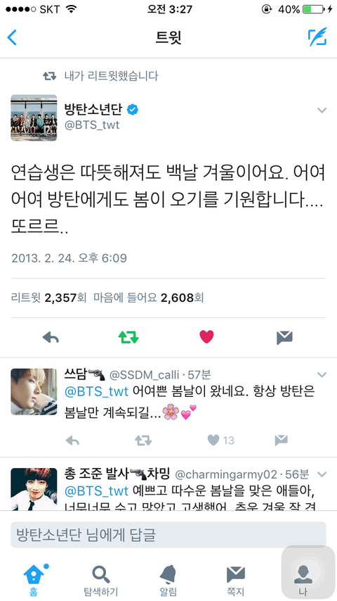 2013년 찬 겨울속에서 봄날을 꿈꾸던 아이들이 이젠 본인들이 누군가에게 봄날을 선물하고 있어