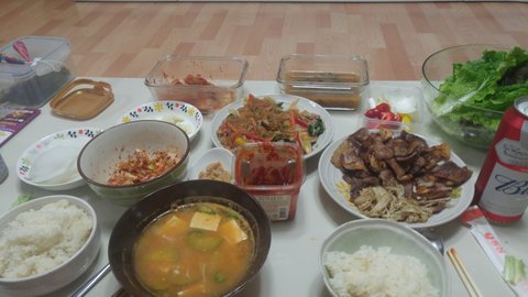 이건 저녁상 삼겹살,잡채 등등