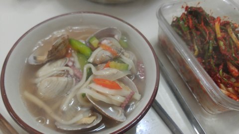 집에있는 해물로 칼국수 끓여보았어요