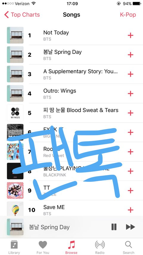 한국 신곡 나오면 사과차트에 바로 올라가고 그러는 일이 가끔인데 방탄이들 노래 바로 다 차트에 올라가고ㅠㅠㅠ 신곡 올킬이얌ㅠㅠㅠㅠㅠㅠㅠㅠ넘나 감격스럽다... 노래 다 좋아