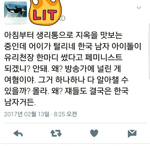남자의 입장으로 ㅇㅎ에 대해 생각하고 그러다보니까 실수한거 같은데ㅠㅠ 이건 말이 심하지 않냐... 처음부터 완전히 고쳐질 수 없는거고 더 알아가고 싶어하는 사람한테 응 그래봤자 한남~ 이거잖아ㅎ 처음부터 원래 페미분들만큼 잘 알 수는 없는건데 심하게 비난을 하네