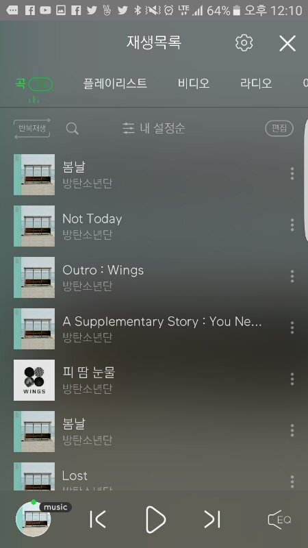 지금 밖이라 공기계로 돌리고 나왔어 어제 폰으로 돌리던 재생목록으로 인증...! 총조준발사 거기 정국이랑 호석이 킬링파트라서 난 조용히 감상하고픔..ㅋㅋ