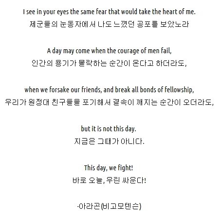 not today 가사 영감 얻었다는 반지의 제왕 대사