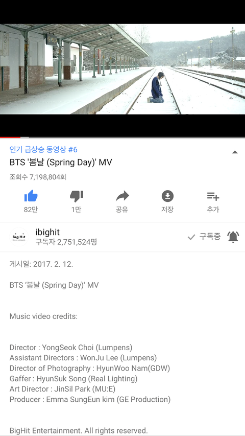 와 조회수 미쳤다 700만 넘음
