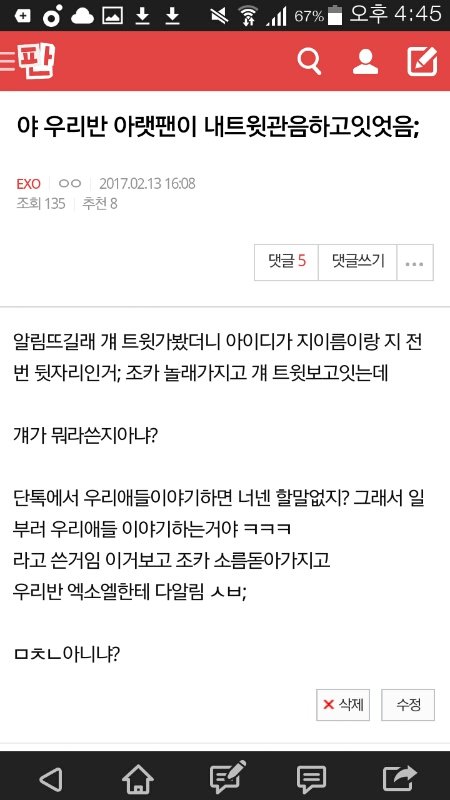 아까 이글들쓴년인데