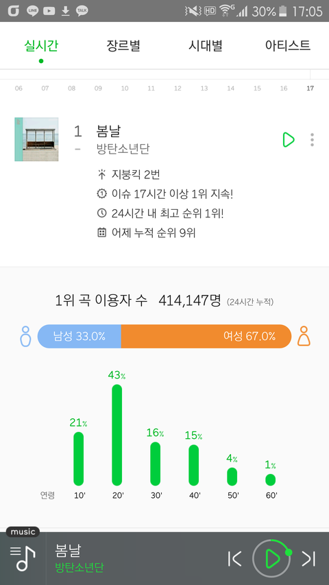 5시차트 이용자수야~