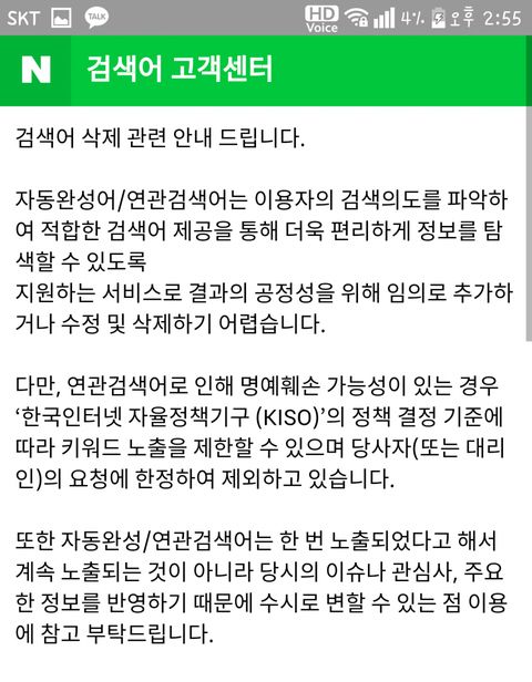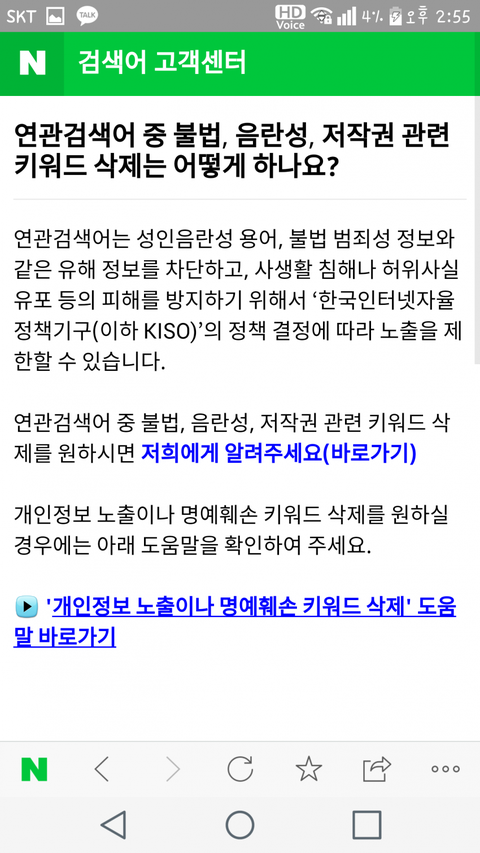 네1이1버 연관검색어 삭제. 모바일 버전
