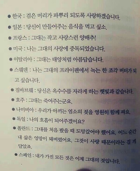 각 나라별 고백에 방탄