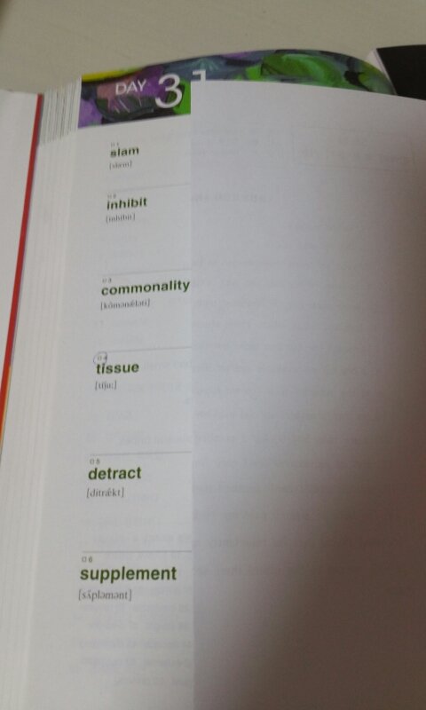 끝낼 때 까지 반복합니다. 그리고 그 후 빨간 볼펜으로 동그라미가 그려진 단어들만 집중적으로 외웁니다.