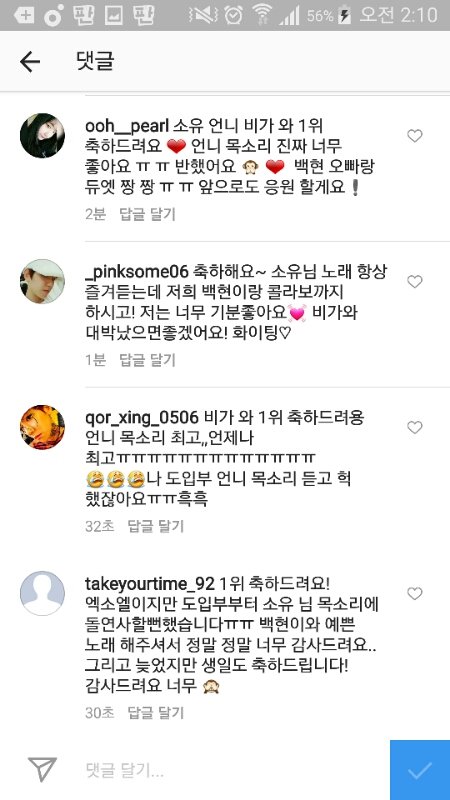 쏘you님 인스타댓글 훈훈 ㅜㅜ