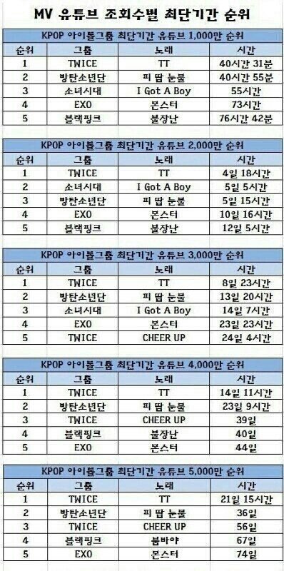 뮤비최단시간1000만뷰 기록갱신한아이돌