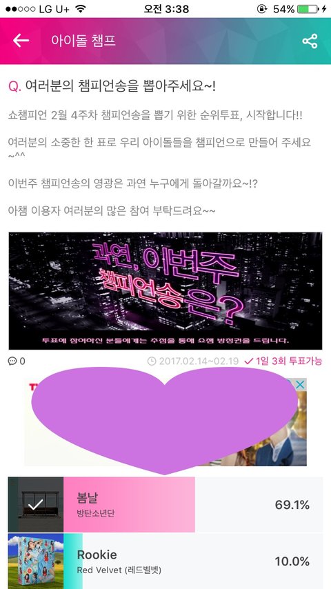 하루에 3번 투표 가능하니 하루도빠짐없이 하장