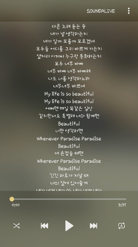 와 진짜 뷰티풀 너무 좋다 가사중에 너만을 생각하면 whenever paradise 이부분 진짜 애들이 캐럿들 너무 사랑하는게 느껴져서 너무 벅차