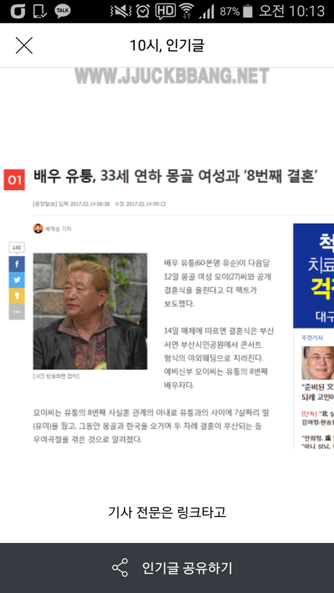배우 유퉁, 33세 연하와 8번째 재혼(남성분들 댓글 꼭부탁)