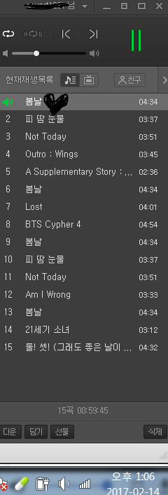 어제 내 방 정리하다가 노트북 켜져있길래 끄려고 보니까 이어폰에서 소리 나길래 뭔가 들어봤더니 노래 너무 좋아서 듣고 처음으로 돌려서 또 듣고 또 듣고 그랬대ㅋㅋㅋ기여어(봄날)