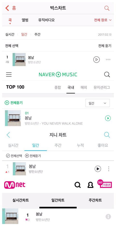 음원사이트 4개 일간 1위ㅜㅜ