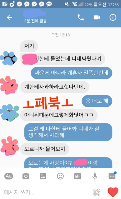 저기에 이어쓰면 너무 복잡할거 같아서 여기에 따로쓸게 일단 아까 페북에 올린 저격글은 삭제했고 어떻게 판 봤는지 아까 페메왔더라 ㅋㅋㅋㅋㅋㅋㅋㅋㅋㅋㅋㅋㅋㅋㅋㅋ 진짜 너무 뻔뻔하고 가증스럽다 혹시 더 궁금한거 있는 판녀들은 댓글 달아줘