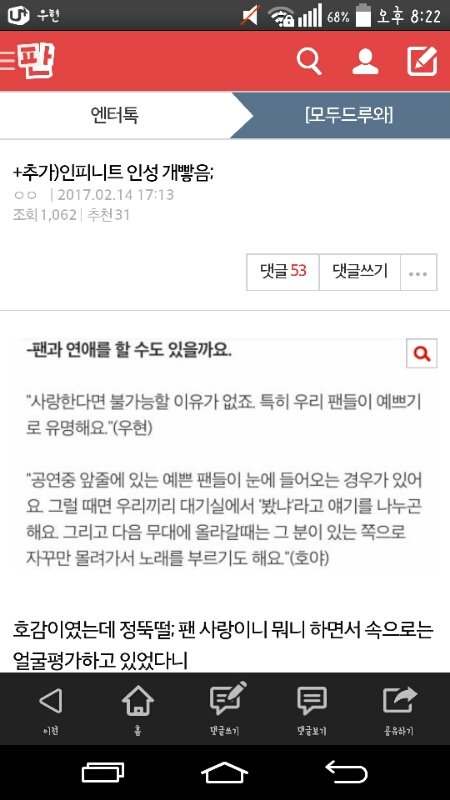 이거 지금 톡선오르기 직전인데? 톡선오르면 또 금새 순위 올라가고 순위오르기 시작하면..? 이젠 댓글도 달지말고 울림한테 메일이나 보내자 저것도 시간지나면 묻힐거야 톡선오르는것만 막아줘ㅜㅠㅠ