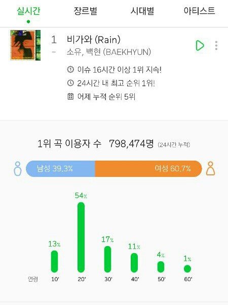 170214 #비가와 멜론 & 지니 일간 1위 !!! 백현