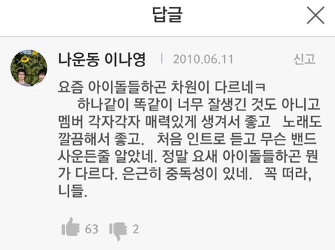 2010년에 썼던 멜론 후기야ㅋㅋㅋㅋㅠㅠㅠㅠㅠㅠㅠ저때부터 남다른 신인이었구나 진짜 다시돌아와 개명곡인데 왜 안떴는지ㅜㅜ