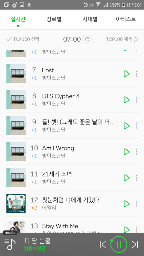 멜롱 7시차트 1,2,3위 유지