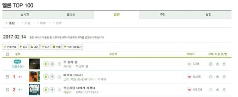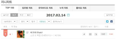 170214 #비가와 멜론 & 지니 일간 1위 !!! 백현