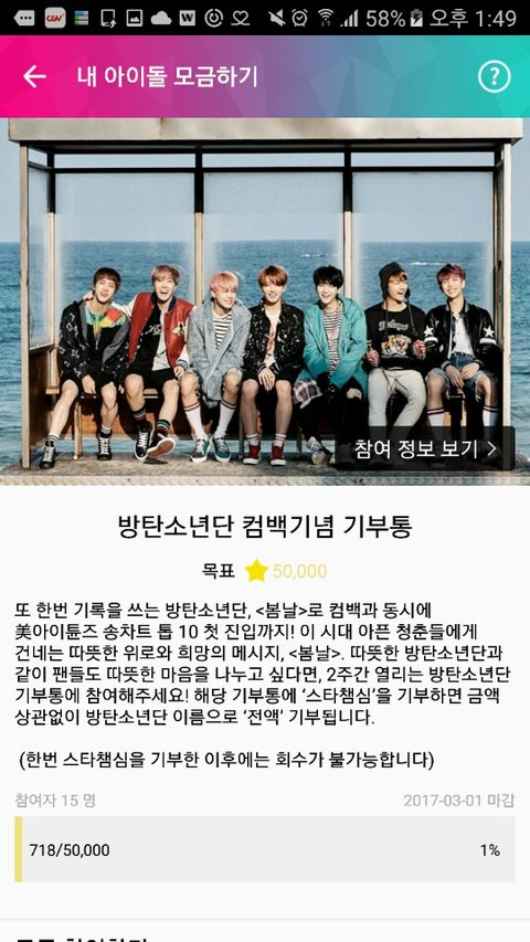 챔심??으로 모금하면 방탄이름으로 기부한대