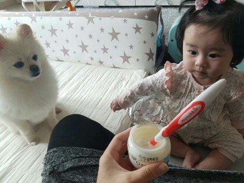손녀 이유식 먹이는데
