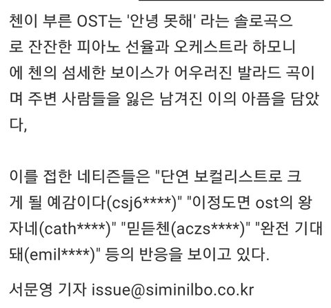 (기사)크게 될 보컬리스트, OST계의왕자