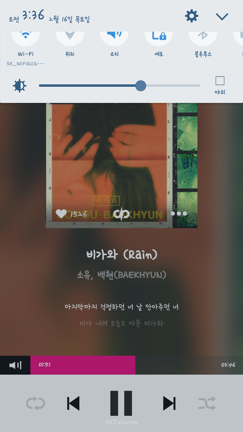 안녕하세요*^^* 전 타팬인데 새벽감성때문에 지금 노래듣고있는데와 비가와 너무조흠^^^^비올때마다들을께ㅛㄱㅋㅋ