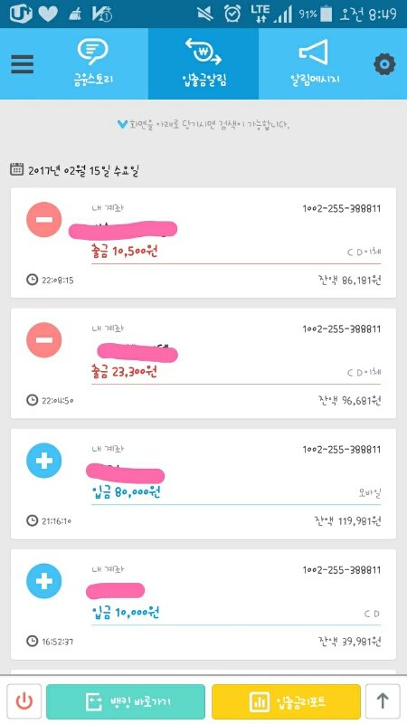 2월 15일 마지막 석&솔 생일 조공 입금 현황입니다