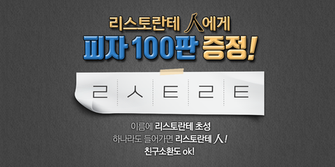 페이스북에서 이벤트도 하고 있더라구여이름에 저 초성 중 하나만 들어가도 리스토란테피자 증정!궁금하신 분은 링크 들어가보세용