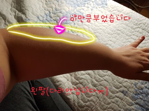왼쪽팔이 부운걸보고 엄마도 동생도 놀란눈치더라고요..